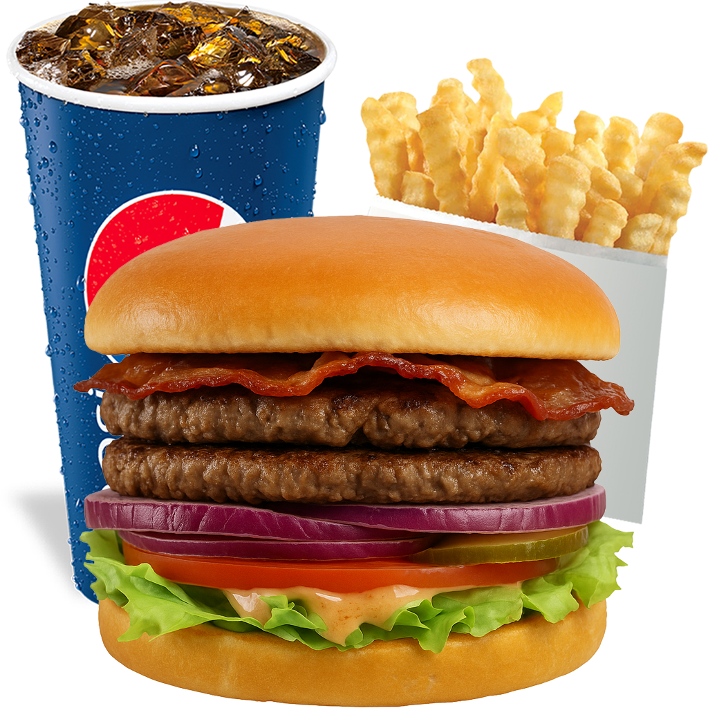 Double the patties and double the bacon π₯ππ₯. Packed with fresh toppings and house sauce on a toasted bun, this burger delivers bold, smoky flavor in every bite. π Comes with fries and a refreshing drink π₯€.